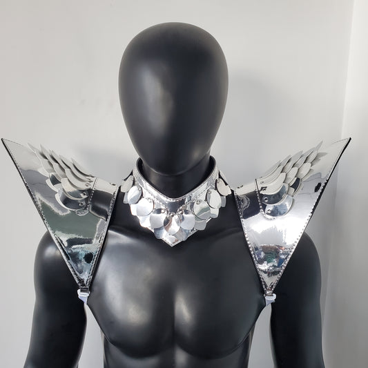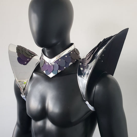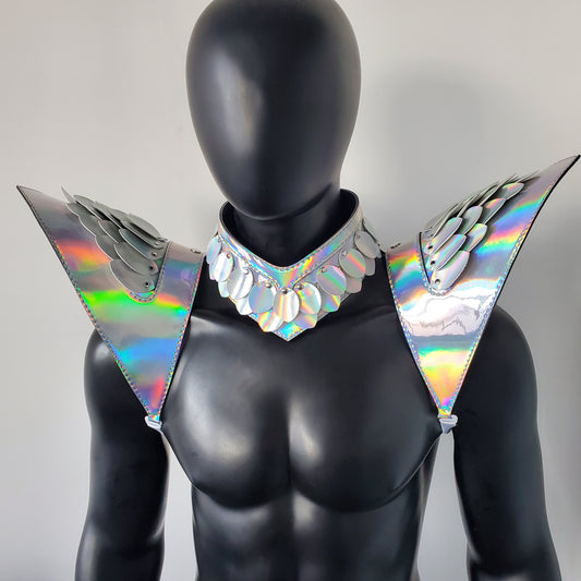Burning Man Holographic Laser Silver Dragon Scale Armor, Rave Shoulder Piece Armor EDM Festival Outfit