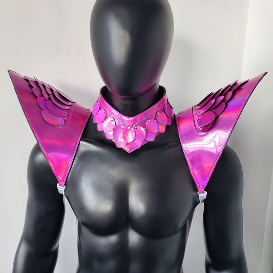 Burning Man Holographic Laser Pink Dragon Scale Armor, Rave Shoulder Piece Armor EDM Festival Outfit