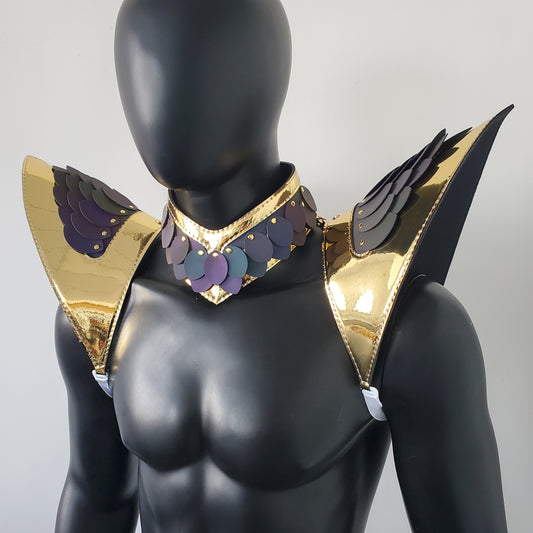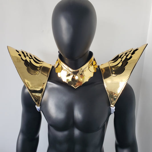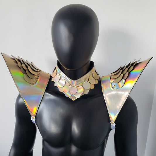 Burning Man Holographic Gold Dragon Scale Armor, Shoulder Piece Armor EDM Festival Outfit
