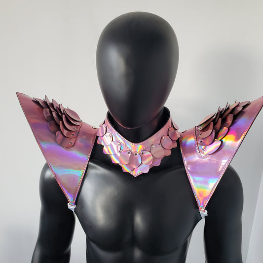 Burning Man Holographic Laser Rosered Dragon Scale Armor, Rave Shoulder Piece Armor EDM Festival Outfit