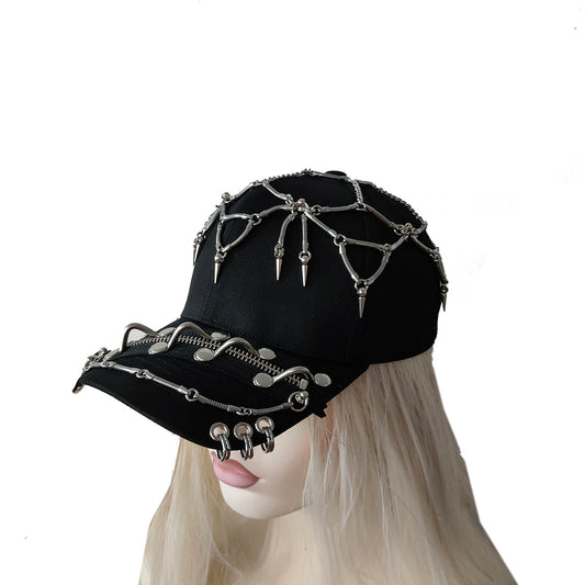 Rock Black Studded Cap with Zipper - Chain Cap - Gothic Baseball Cap - Edgy Streetwear - Trucker Cap - Punk Style Hat