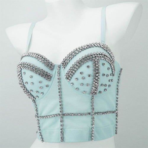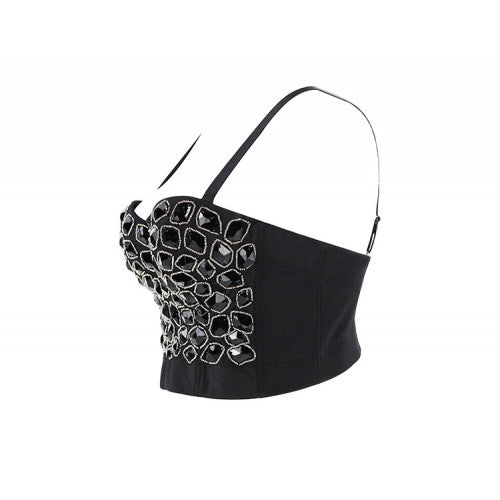 Burning Man Black Crystal Rhinestone Beaded Embellished Bustier Corset Bralet Top Bra Party Clothing 36055