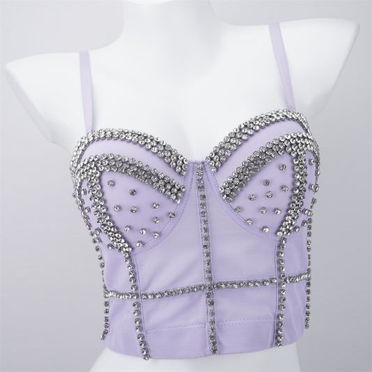 Purple Burning Man Rave Festival Rhinestones Embellished Bustier Corset Top Bra Party Clothing 36065