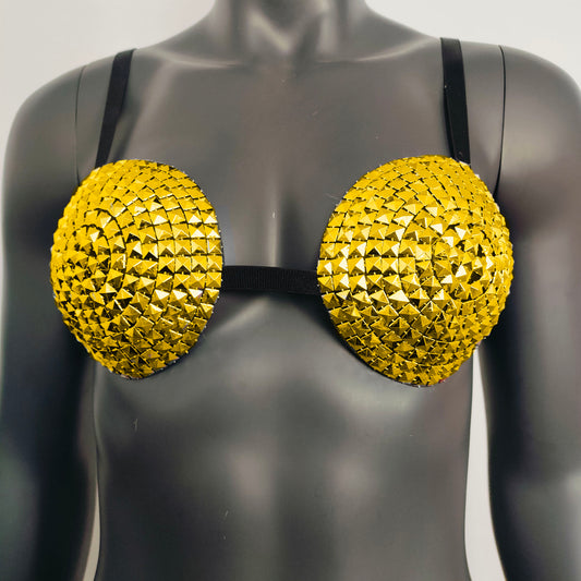 Gold Gothic Punk Rock Bra Top for Women,Burning Man Bra