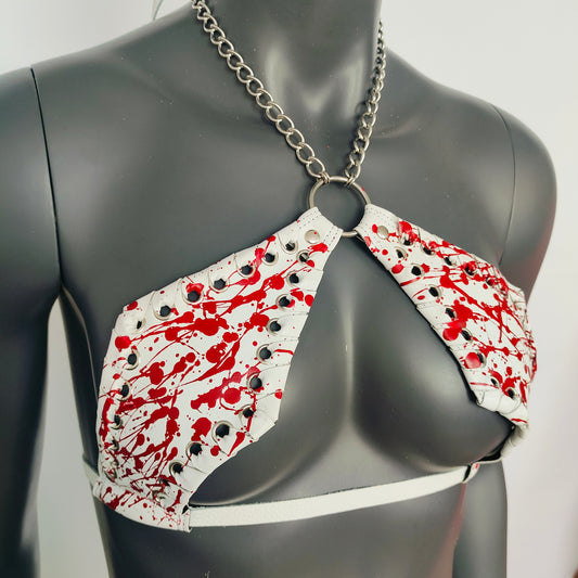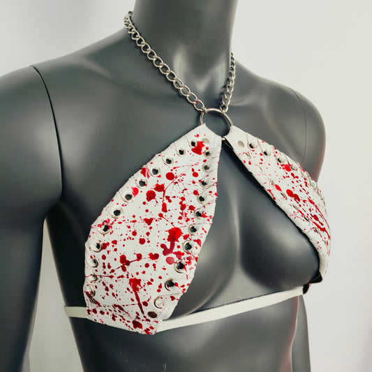 Gothic Vinyl White Vampira - Blood Splatter Cross Top Bra