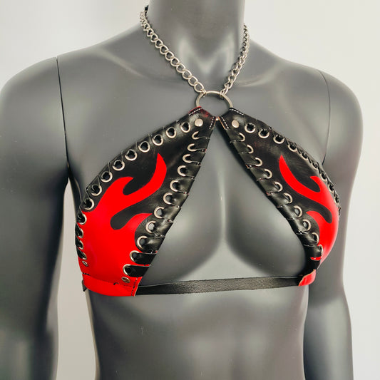 Gothic Vinyl Vampira Flame Cross Top Punk Bra