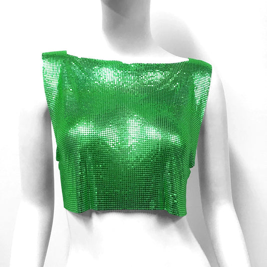 Green Metallic Sequin Top Rave Vest Music Festival Camisole