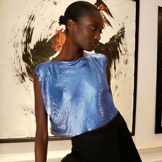 Blue Metallic Sequin Top Rave Vest Music Festival Camisole