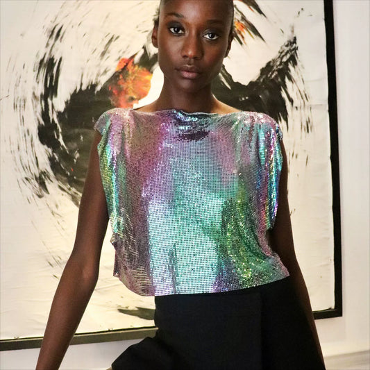 Holographic Metallic Sequin Top Rave Vest Music Festival Camisole