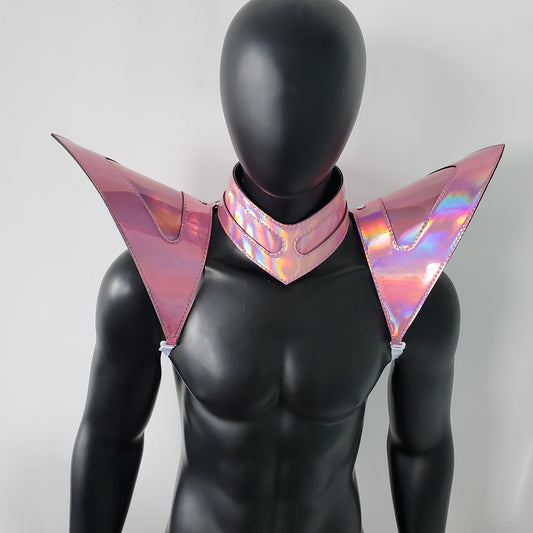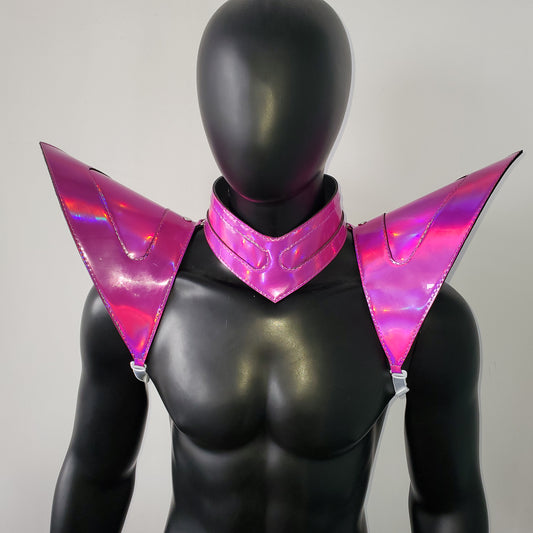 Burning Man Holographic Laser Pink Armor, Rave Schulterstück, Festival Choker Cape, Schulterpolster Karnevalskostüme