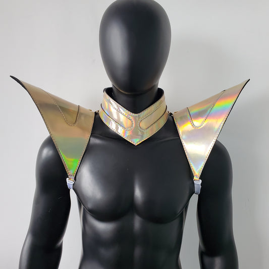Burning Man holographische Laser-Gold-Rüstung, Rave-Schulterstück, Festival-Choker-Umhang, Schulterpolster, Karnevalskostüme