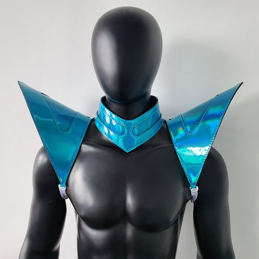 Burning Man Holographic Laser Blue Armor, Rave Schulterstück, Festival Choker Cape, Schulterpolster Karnevalskostüme
