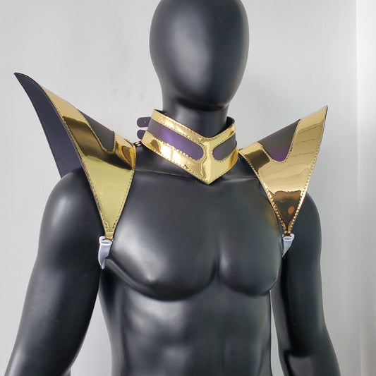 Burning Man holografischer Goldrand reflektierend Rüstung, Rave-Schulterstück, Festival-Choker-Umhang, Schulterpolster, Karnevalskostüme