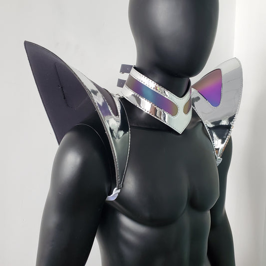 Burning Man holografische silberne Rüstung, Rave-Schulterstück, Festival-Choker-Umhang, Schulterpolster, Karnevalskostüme