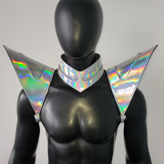 Burning Man holographische Laser-Silberrüstung, Rave-Schulterstück, Festival-Halsbandumhang, Schulterpolster, Karnevalskostüme