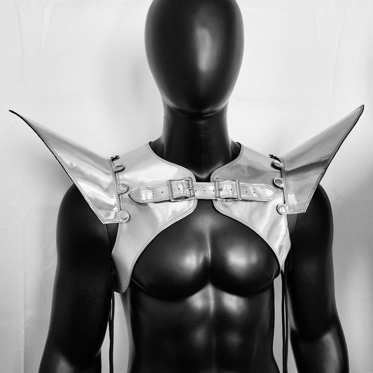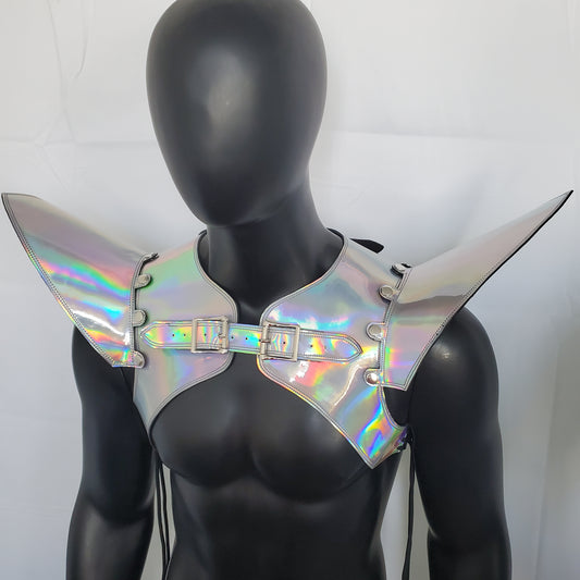 Burning Man holografische silberne Rüstung, Rave-Silber-Schulterteil, Festival-Silber-Rüstungsweste, Schulterpolster, Karnevalskostüme