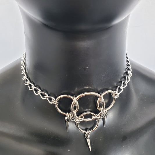 Collier de chaîne, collier pendentif à pointes en acier inoxydable argenté pour hommes et femmes, collier unisexe, collier O Ring - fait à la main