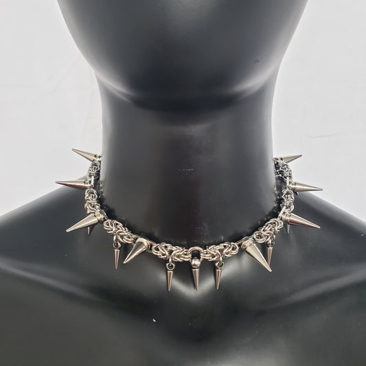 Modern Industrial Style Punk Stainless Steel Chain Necklace Spike Pendant Necklace