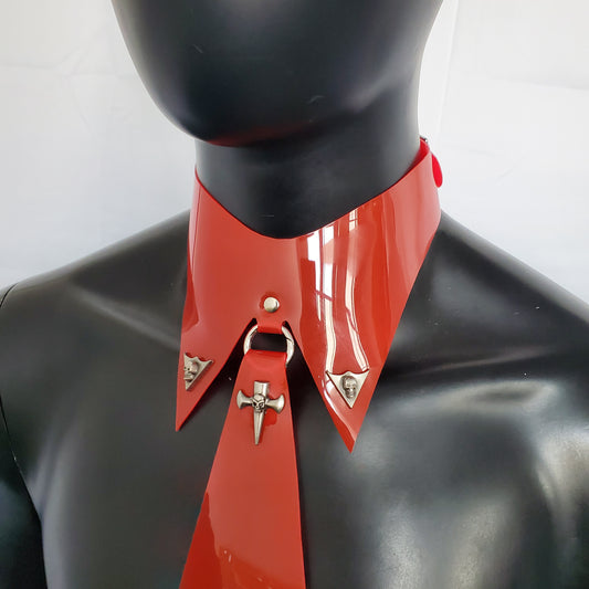 Homme Punk crâne Rivet Spike cravate, cravate étudiant Cosplay, cravate en PVC rouge, cravate gothique