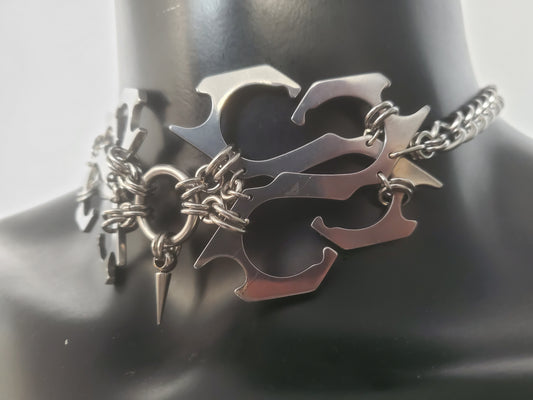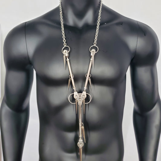 Punk Mechanical Tie, aindustrial Style Stainless Steel Handmade Necklace, Punk Spike Pendant Necklace