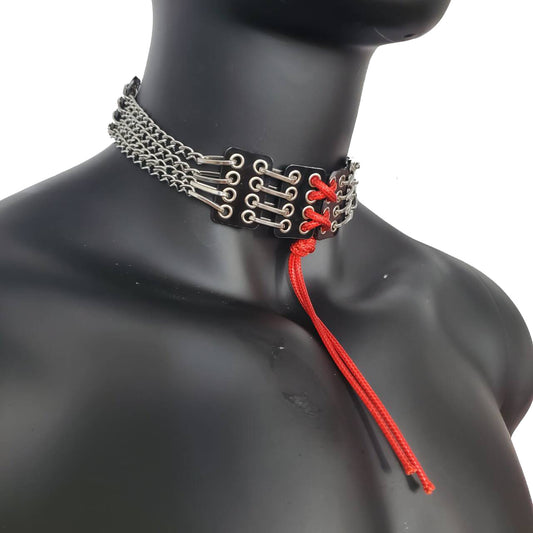 Red String Corset PVC Choker Punk Grunge Goth Gothic Collar Necklace Chain Limited Edition Handcrafted For Men