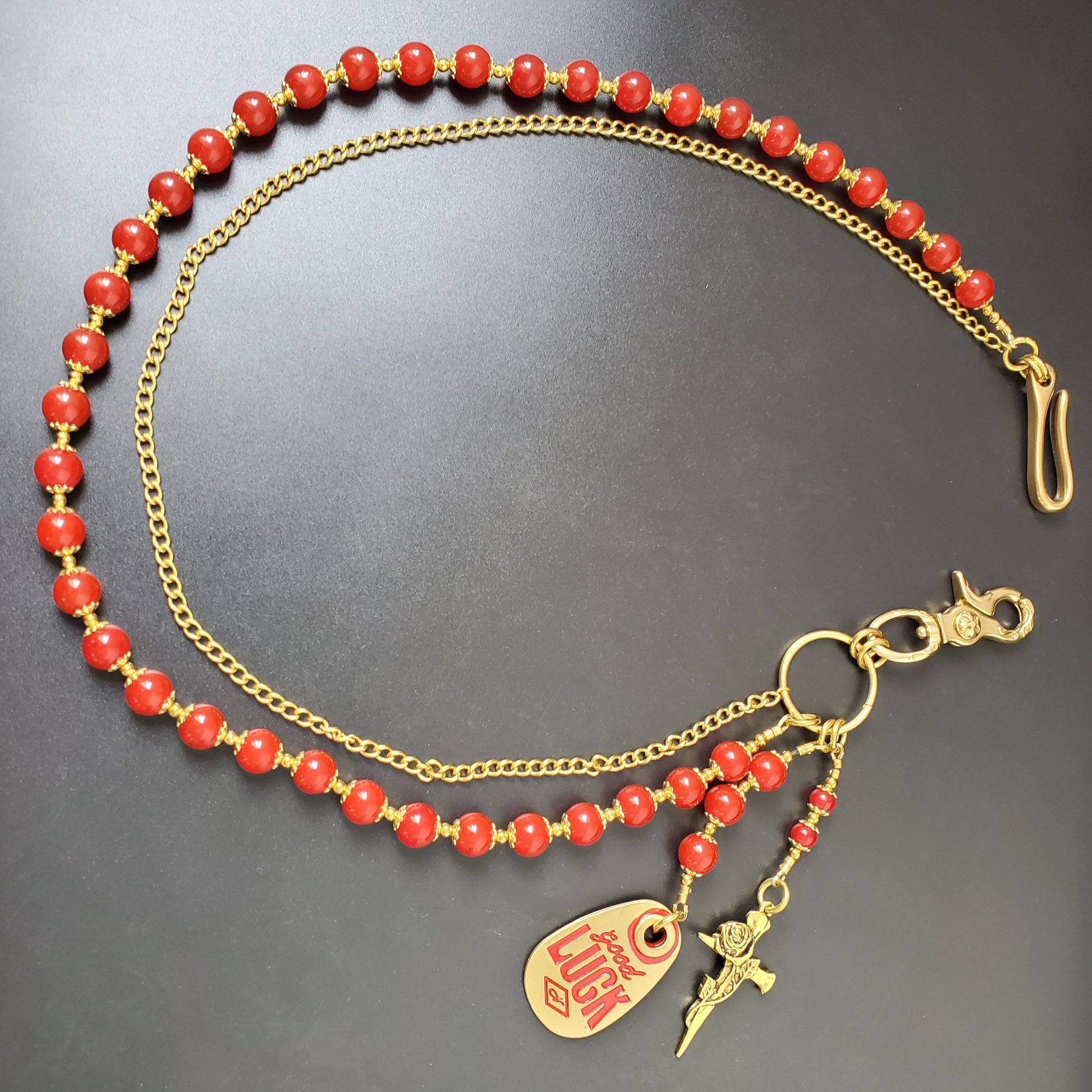 Red Chalcedony Stone Round Beads Wallet Gold Chain,Jeans Chain,Handmade Gothiic Punk Pants Chain,Biker Wallet Chain